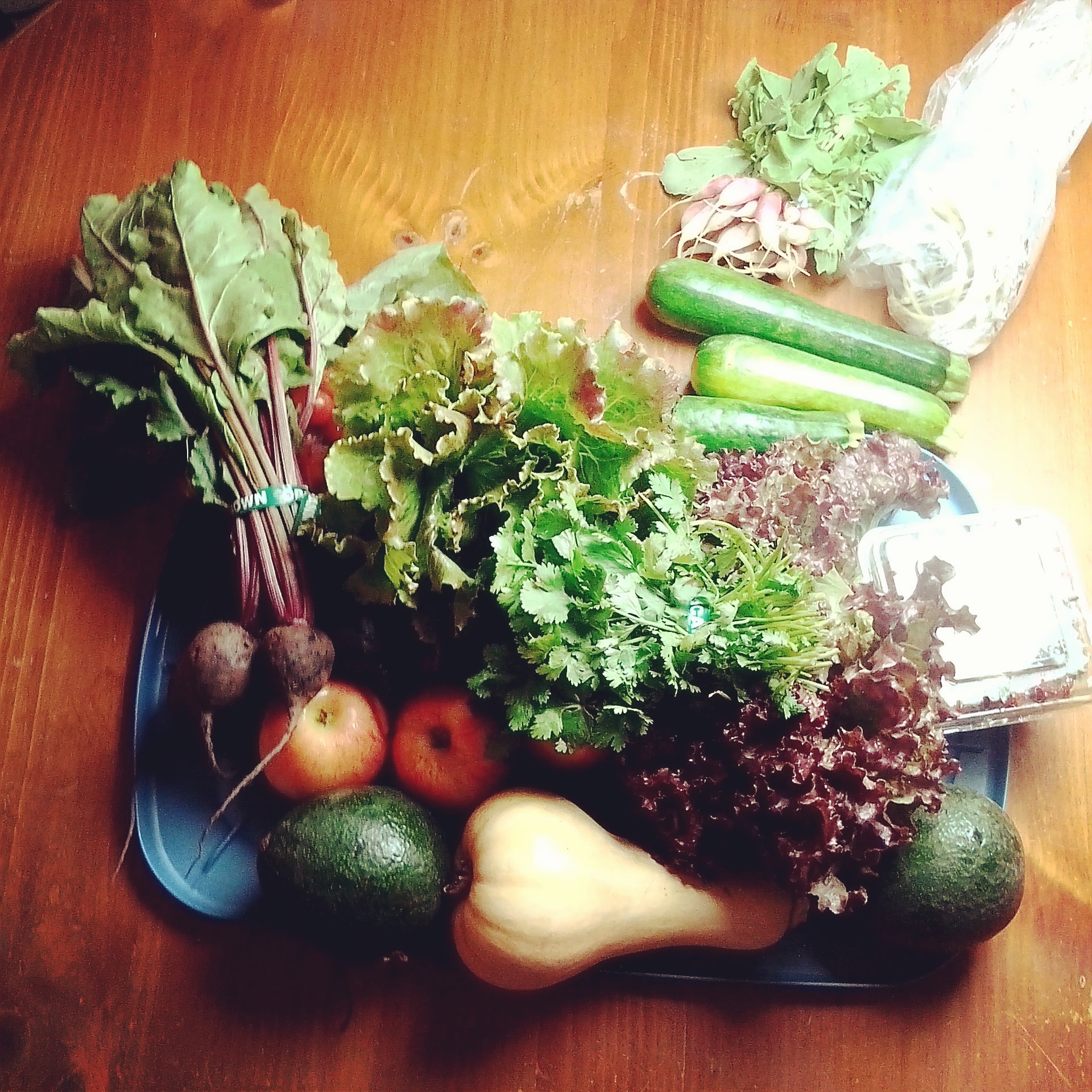 Last week, my wife and I decided to sign up for a couple of local CSA’s (community sponsored agriculture.) We signed up with J.R. Organics for our produce and SonRise Ranch for our meat. We were already purchasing a good portion of our produce from J.R. Organics from the farmers market, so they seemed the most fitting and logical when decided on which farm to go with. We like SonRise Ranch because their animals are all pastured, including the pigs and we agree with their farming practices and methods which includes not engaging in the use of GMO feed, pesticides, antibotics. They also use sustainable methods which is refreshing in this age of resource depletion. We signed up for the weekly CSA box and the veggies provided will be enough for our family for the week, along with what we can supplement from our garden. The meat totaled 14lbs, 7lbs beef and 7lbs pork. If you eat organic or clean, then you know how hard it is to fine pastured, grass-fed pork. We received various cuts from pork chops, roast and pork ribs to New York steak and ground beef. I haven’t had ribs or pork chops in at least 2 years since I committed myself to eating a GMO free diet. Needless to say, I am stoked and we are cutting our grocery bill almost in half. If you would like to locate a CSA in your region, click here. Below are some pictures of our CSA treasures: