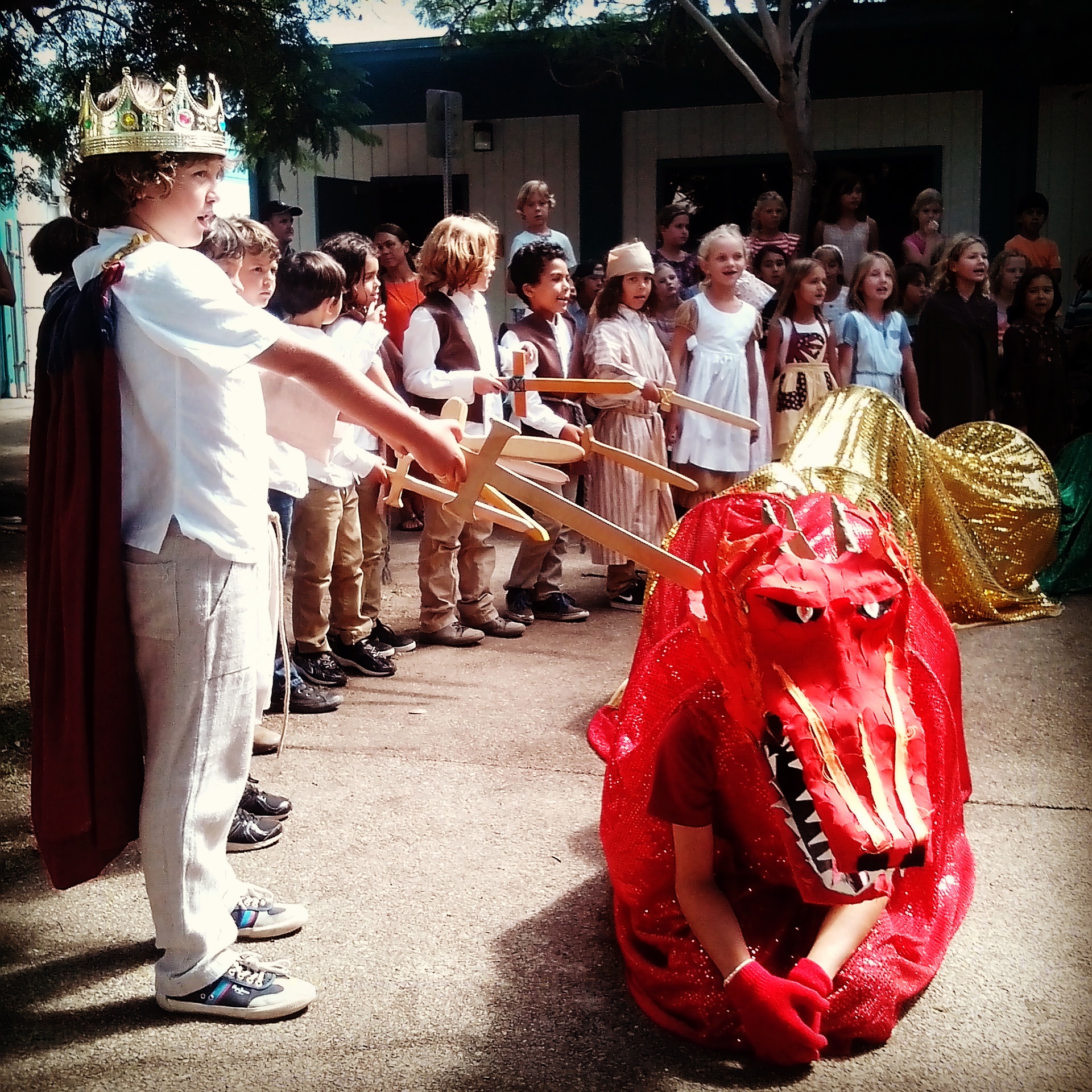 At our son’s school on Friday we had the pleasure of observing and participating the Michalemas festival, which is a celebration of courage, reflection and conquering fears. Also known as the festival of strong will. We watched a magical play that depicted the slaying of the dragon by St. George. There was a slight deviation from the story as this version had the 1st graders taming the dragon as opposed to actually slaying the creature. It was quite an adorable adaptation. After the theatrics, we were treated to “dragon bread,” organic handmade bread baked at the school. Then came time for the games! Children challenged themselves on the wooden obstacle course with such challenges as a teeter totter balance beam and varying balancing and crawling obstacles. On the hillside children could be observed chasing hula hoops while running between through the center. Fresh organic fruit kabobs provided refreshing nourishment between the challenges. It truly was a joyous festival. If you would like to read more about Michaelmas, click here. If you would like to learn more about Waldorf education, click here.